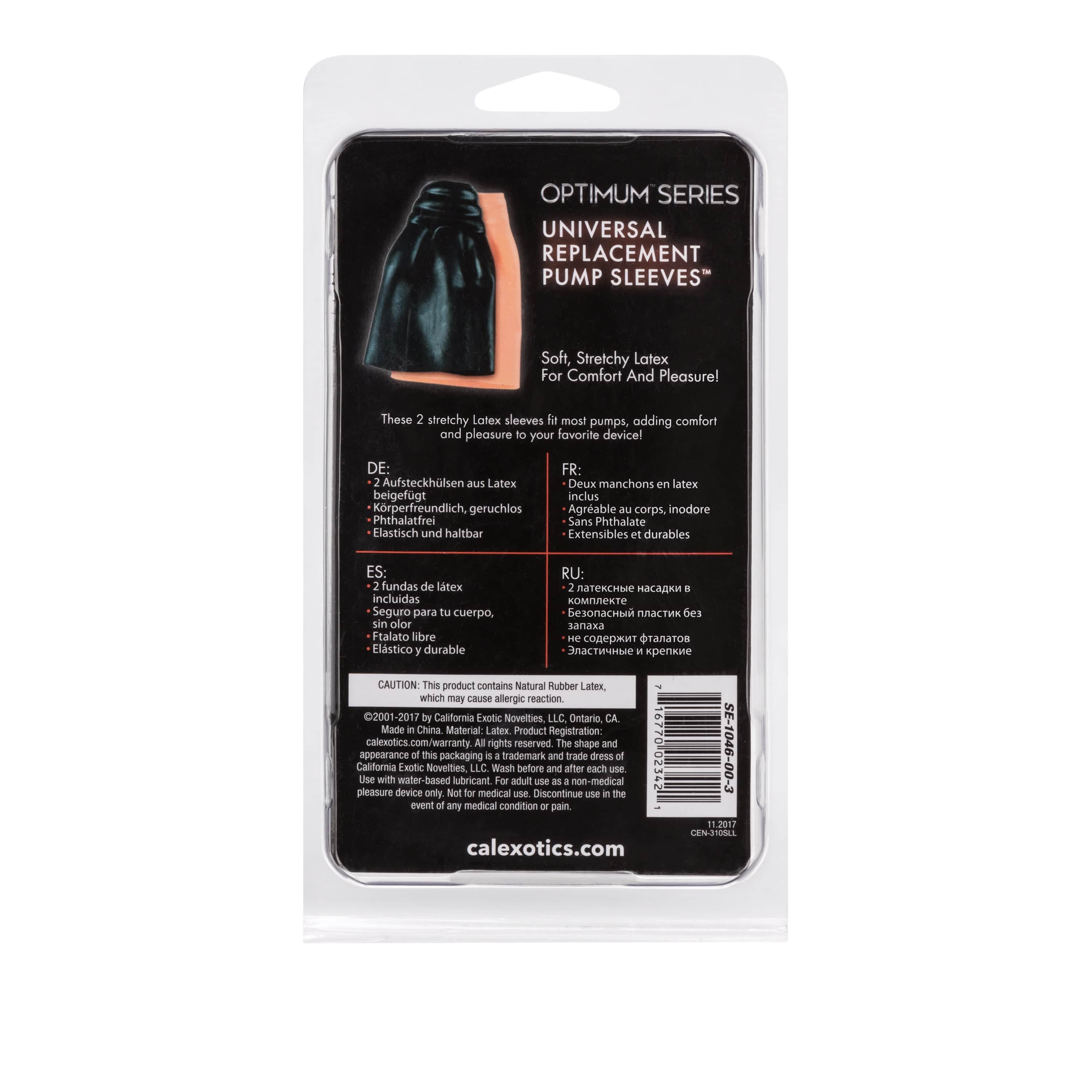 Make sure your penis pump is as comfortable as it can be with the California Exotics Optimum Series Universal Replacement Pump Sleeves. Designed to fit most pumps, this body-safe material fits snugly around your shaft within the pump. You can then use your penis pump to achieve harder erections and more powerful orgasms!