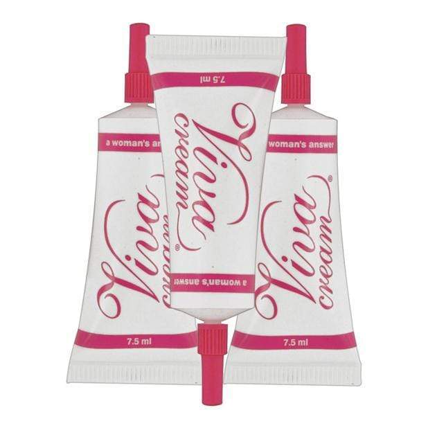 Viva Cream is a unique combination of herbal extracts, vitamins, and amino acids in a clear, non-sticky gel. Each ingredient has been chosen for its proven effects on the sensitive tissues of women. Using Viva Cream may stimulate a woman's desire, intensifying arousal. This box contains three tubes of Viva Cream. Each tube with resealable twist-off lid contains .25 oz of Cream. Viva Cream is made for the demands of every woman who wants more!