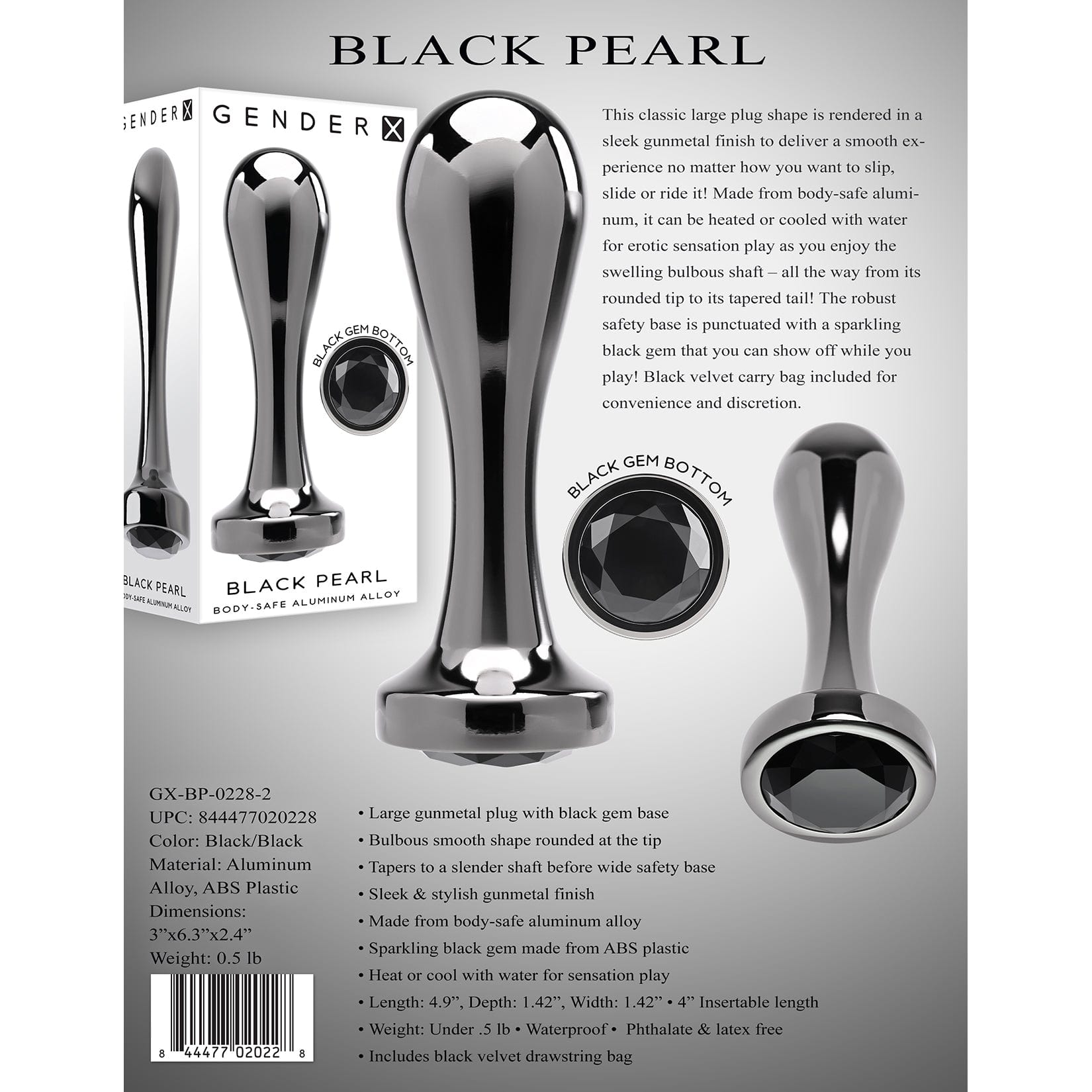 Discover a truly unique pleasure experience with the Evolved Gender X Black Pearl Vibrating Anal Plug! This gorgeous plug is designed to bring you to a whole new level of pleasure with its sleek gunmetal finish and tapered, bulbous shape. The rounded tip is perfect for easy insertion before you experience the swelling shaft, all the way to the wide safety base punctuated with a sparkling black gem! Enjoy the added sensation of temperature play as you heat or cool the body-safe aluminum with water. Plus, it's phthalate and latex free, and the included black velvet drawstring bag keeps your toy discreet and ready for your next play session!