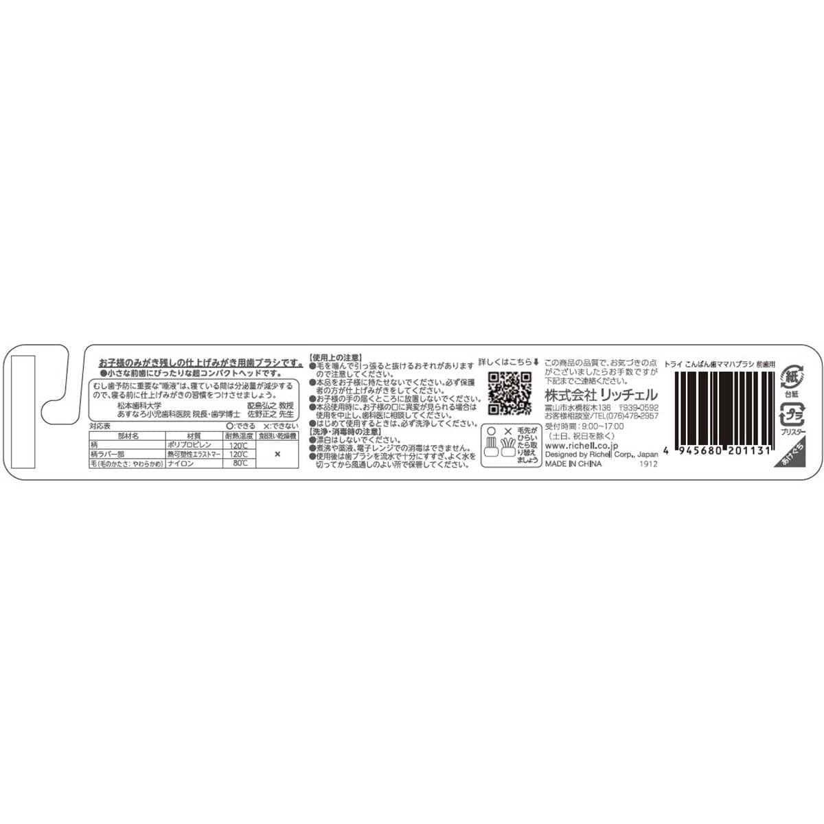 Enhance your baby's dental care routine with Richell - T.L.I Try Good Evening Tooth Mama Baby Toothbrush For Front Teeth. With its gentle and compact design, it ensures effective brushing for your little one's precious front teeth, making toothbrushing a breeze! Richell - T.L.I Try Good Evening Tooth Mama Baby Toothbrush For Front Teeth is a gentle and effective toothbrush designed to provide natural power for your little one's dental care.