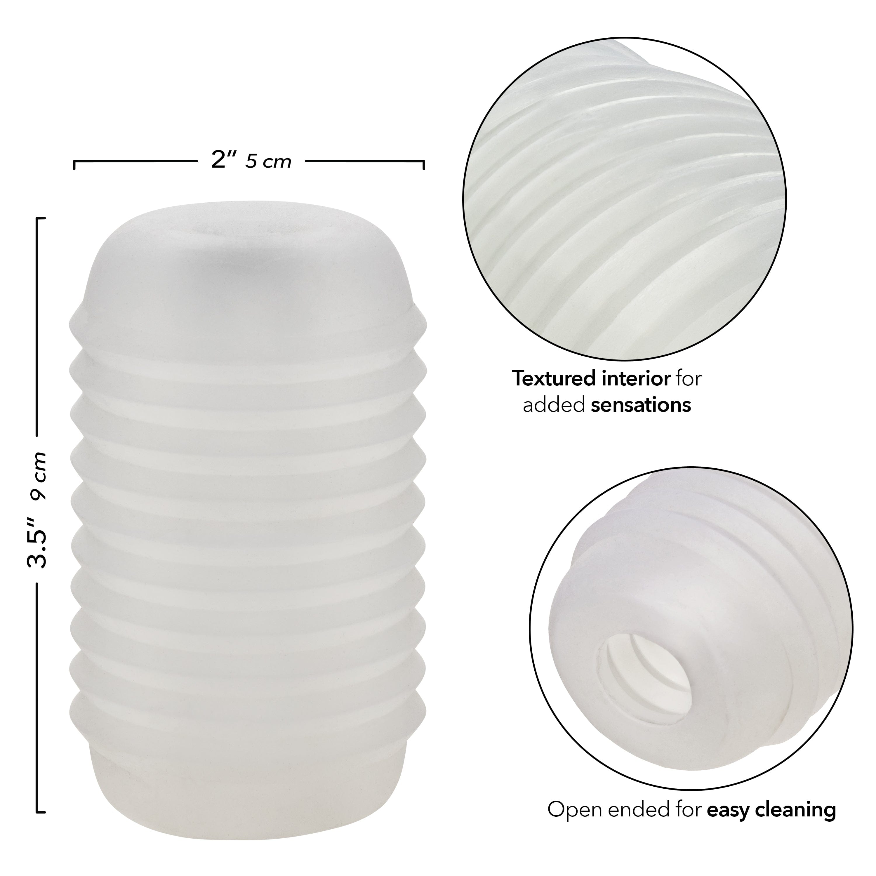 Experience multi-textured pleasure with the California Exotics Pop Sock! Ribbed Soft Stroker Masturbator. This versatile, reversible stroker is designed to cater to your every desire with its unique textured experience. Crafted from soft, tight, and stretchy TPE, it offers a snug, comfortable fit that adapts to your every move. The ribbed interior enhances sensations with its intricate pattern, stimulating every inch for a gratifying encounter. The open-ended design ensures easy cleaning, making maintenance effortless and your experience hygienic. Ideal for both beginners and experienced users, the Pop Sock! Ribbed is a must-have addition to your collection. Features: Phthalate Free, Waterproof Material: TPE Measurements: 3.5 in x 2 in (9 cm x 5 cm) Discover a blend of comfort and excitement with this reliable and exhilarating stroker.