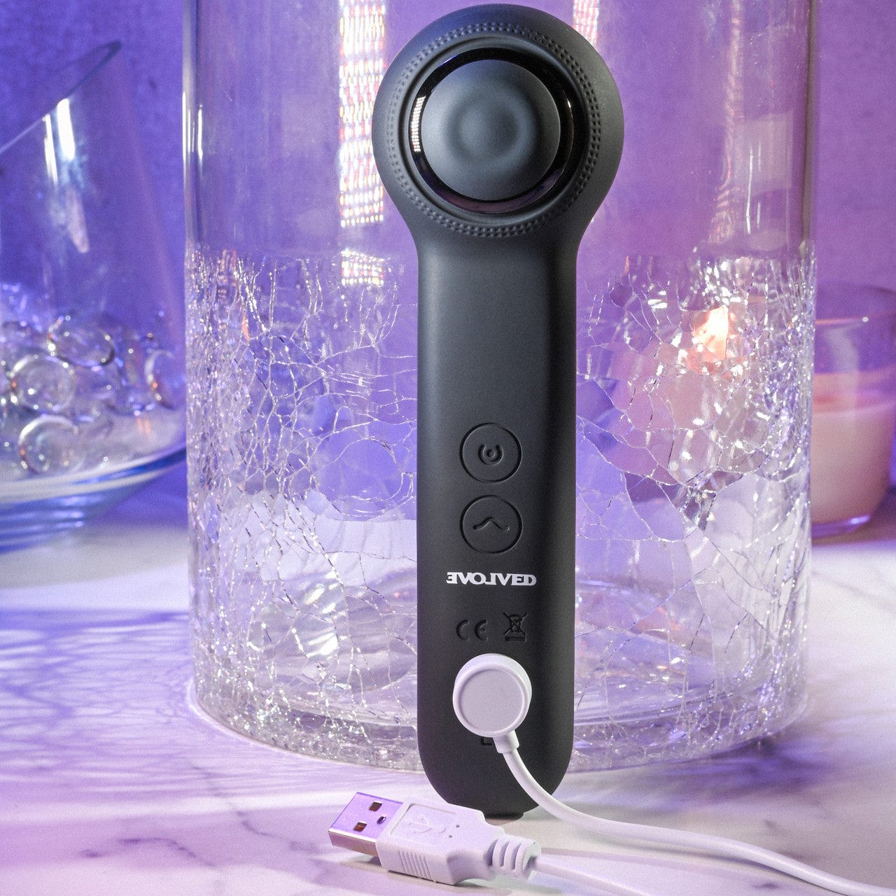 Introducing the Evolved - Tap Dance Clit Massager (Black), a revolutionary tool crafted to unlock your orgasmic potential with precision and power. Experience unparalleled pleasure with this sleek and versatile clit massager. Designed for targeted stimulation, it features seven speeds of tapping pulses, ranging from a gentle rhythm to an intense drumbeat, ensuring you find the perfect tempo to build up to an extraordinarily intense climax. Whether you prefer mild sensations or crave wild thrills, this toy delivers, allowing your hands to relax while you focus solely on pure bliss. Illuminate your play with the red LED-lit buttons that make navigation effortless, even in low-light conditions. Easy to clean with Toy Cleaner and warm water, maintaining hygiene is simple and stress-free. Discover the ultimate in clit stimulation with the Evolved - Tap Dance Clit Massager (Black), where every tap and pulse brings you closer to ecstasy, making it a must-have for your pleasure arsenal.