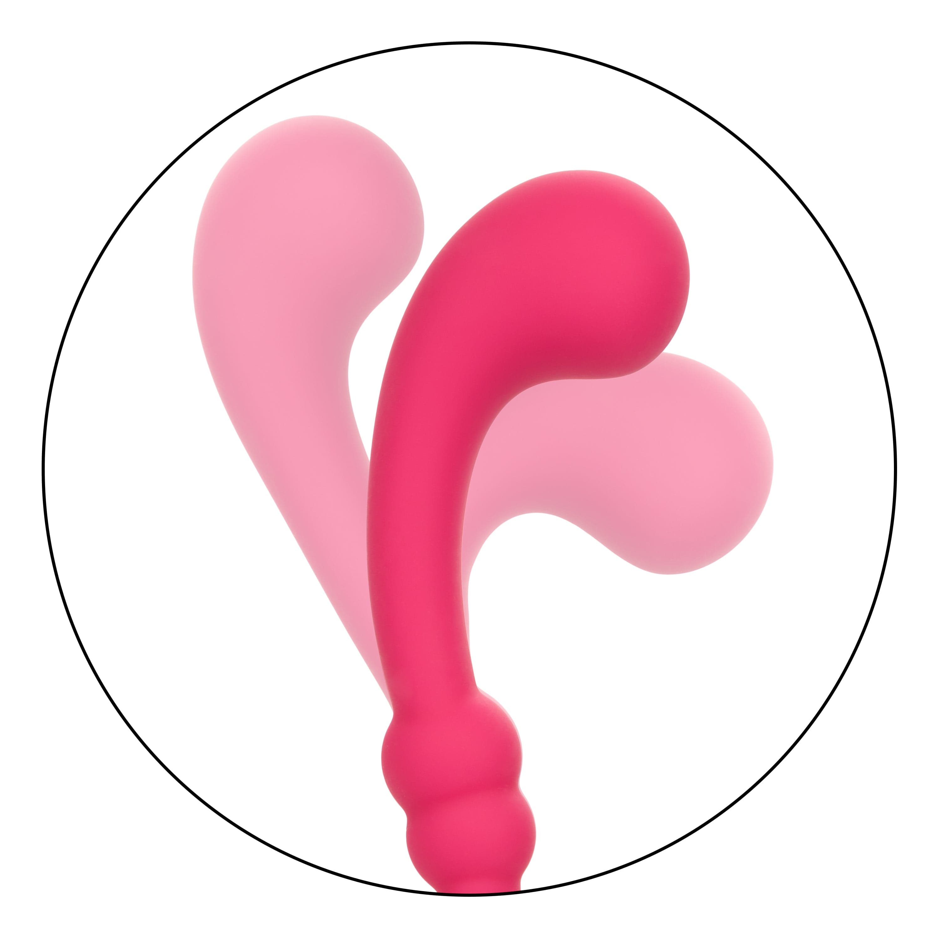 As attractive as it is functional, you can't go wrong if you add this G-spot vibrator to your toy chest! CalExotics has done the research to make a gorgeous vibrator from deep pink silicone that's body-safe as always. The dual-ended curving body lets you decide what you're in the mood for or bend the flexible shaft to create a vibrator customized to your body! Sure to hit just the right place, the flexible massager has multi-directional positioning to flex and bend into the perfect position. Control the 10 modes of vibration with the buttons cleverly located at the center of the toy. Get lost in pleasure alone or with a partner with the indulgent dual ended design.