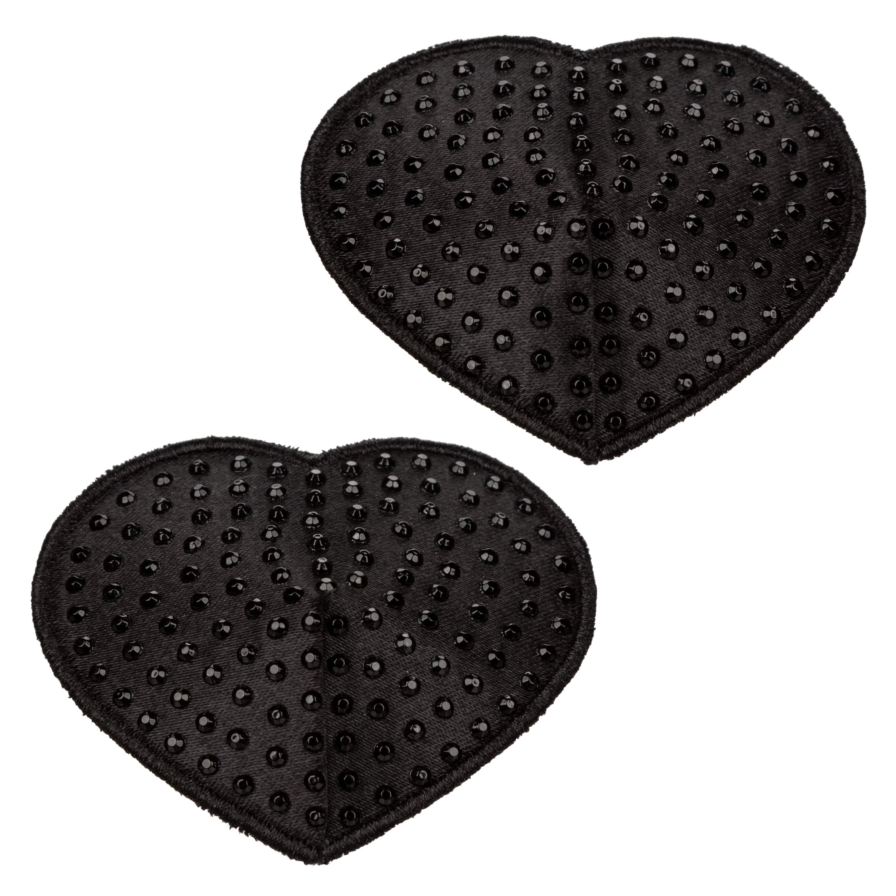 Enhance your allure and style with the California Exotics Radiance Heart Pasties Nipple Covers in sultry Black. Elevate your look and embrace glamour with these reusable pasties, designed to make a statement wherever you go.