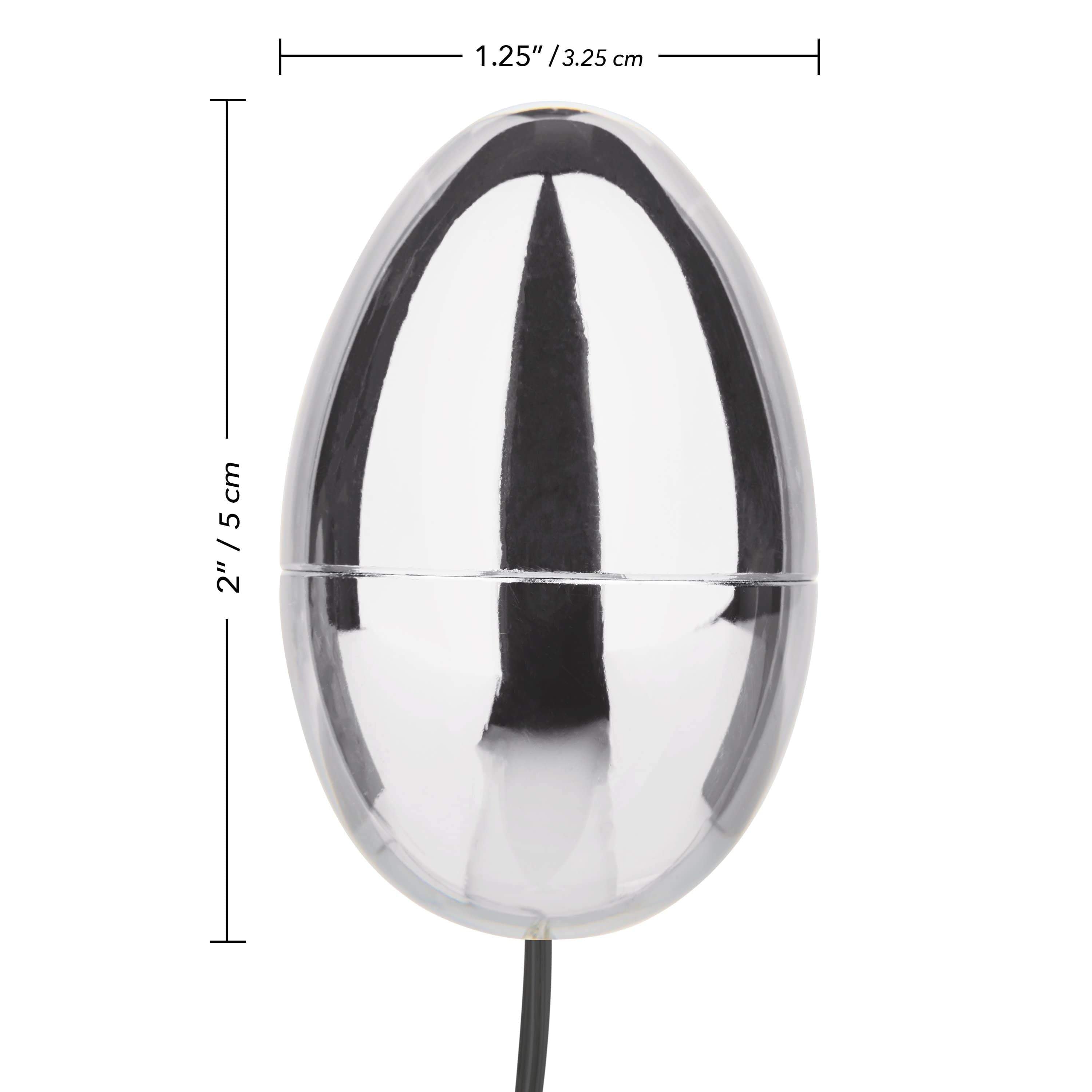 Launch yourself into exhilarating euphoria with this powerful multi-speed remote controlled egg. Sleek and stylish, the powerful silver-plated egg vibrates and pulsates, providing intense sexual stimulation during your wildest fantasies. Use while alone, or with a partner to add new sensual arousing excitement to foreplay. Make your egg even sexier by using it with a water-based lubricant. Wash with toy cleaner or soap and water. Crafted from high quality ABS with silver plating.