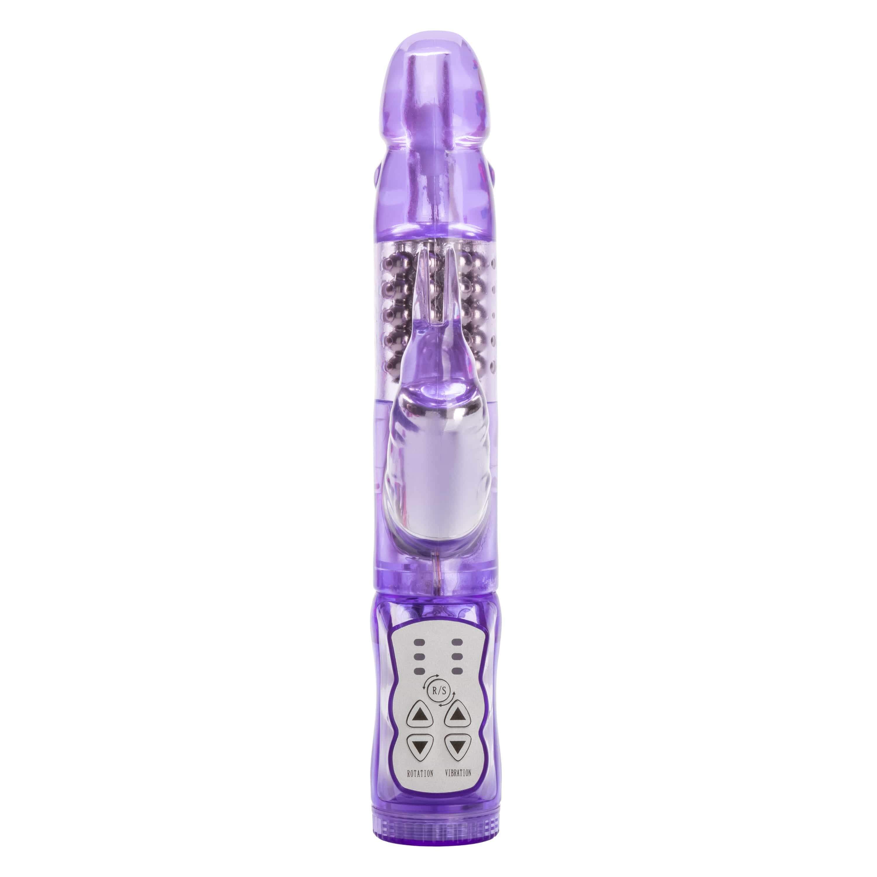 You will get a memorable orgasmic experience from the Jack Rabbit Waterproof 5 Rows Vibrator. It will be your perfect companion for an intense pleasure and intimate fun. You get to choose your own speed from the set of multi-speed options available. The Jack Rabbit Waterproof Vibrator by California Exortics has a transparent jelly shaft, with 5 rows of metal beads rotation, and a super soft, curvy bunny shaped clitoral teaser, with flickering ears for intense stimulation.