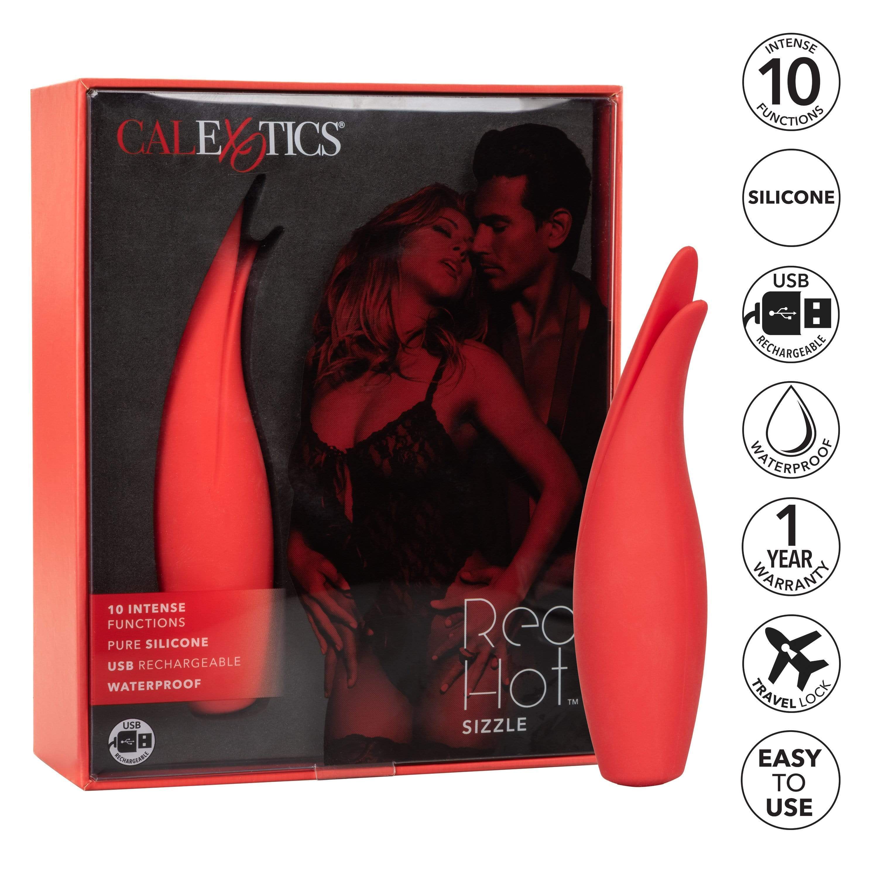 Tickle yourself or a partner to irresistible climaxes with the Red Hot Sizzle Clit Massager in dynamic red by California Exotics. Employ this elegantly curved teaser for sensational play sessions.