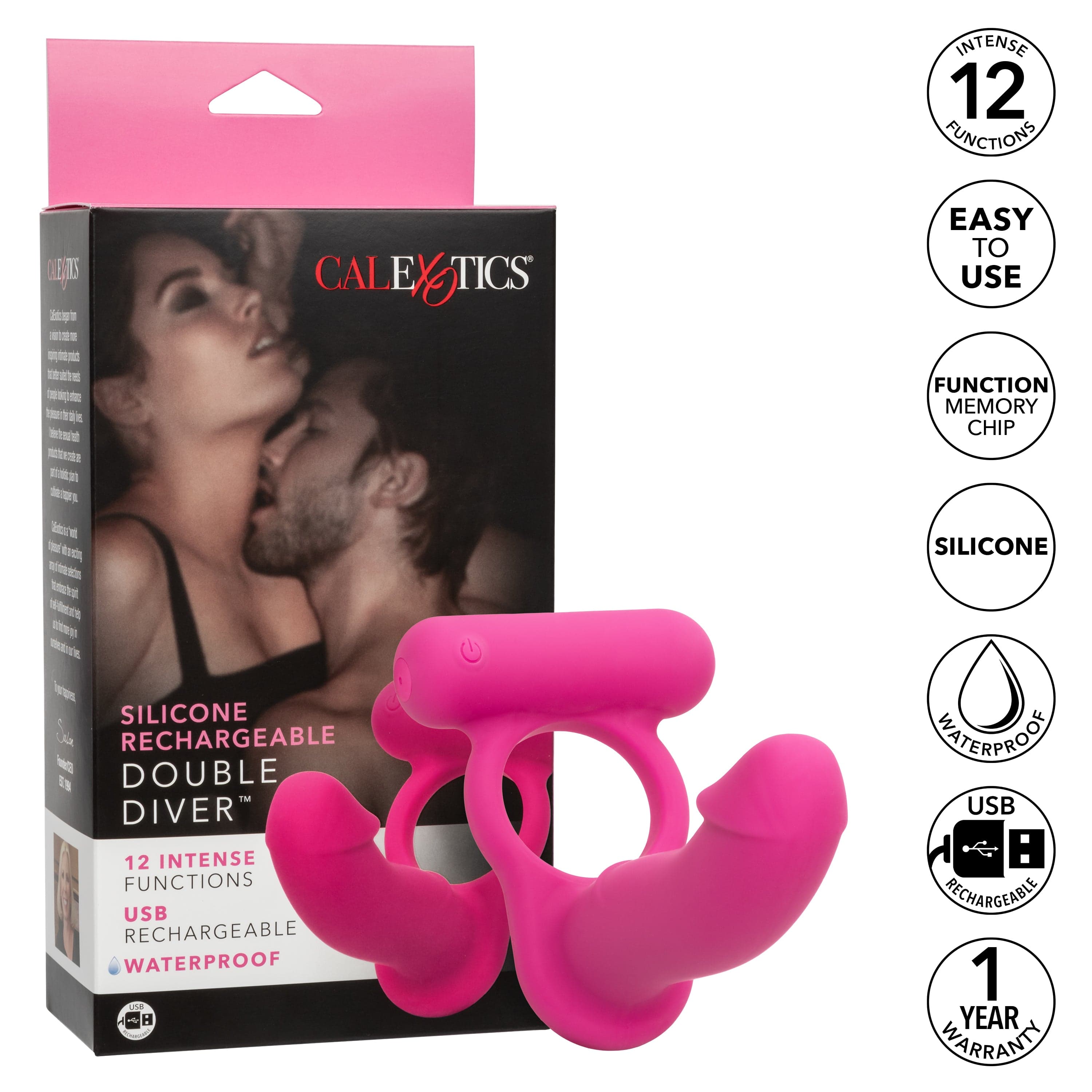 ในขณะที่คุณและคู่ของคุณเข้าถึงจุดสูงสุดของความสุข ฟังก์ชั่นการสั่นอันทรงพลังทั้ง 12 ฟังก์ชันของ Double Diver และทีเซอร์ที่นุ่มนวลจะทำให้คุณทั้งคู่อยู่ในสภาวะแห่งความสุขถึงจุดสุดยอด โพรบแบบโค้งช่วยให้คุณสำรวจความสุขลับๆ ที่น่าตื่นเต้น ในขณะที่ทีเซอร์เพรียวบางปลุกประสาทสัมผัสของคุณด้วยการสั่นสะเทือนที่ลึกและดังก้อง