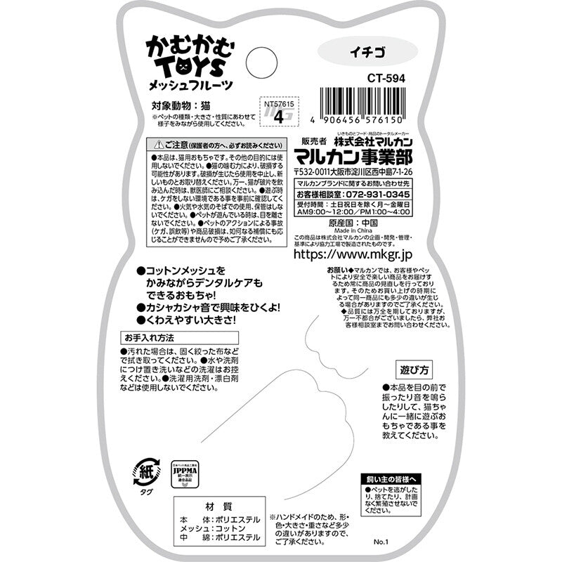 ขอแนะนำของเล่นแมวตาข่ายผลไม้ Marukan Nyanta Club ออกแบบมาเพื่อมอบความบันเทิงไม่รู้จบสำหรับเพื่อนแมวของคุณพร้อมทั้งส่งเสริมการดูแลทันตกรรม ผลิตจากวัสดุตาข่ายผ้าฝ้ายบางและถือง่าย ของเล่นชิ้นนี้ดึงดูดแมวของคุณด้วยเสียงกระทืบที่ไม่อาจต้านทานได้