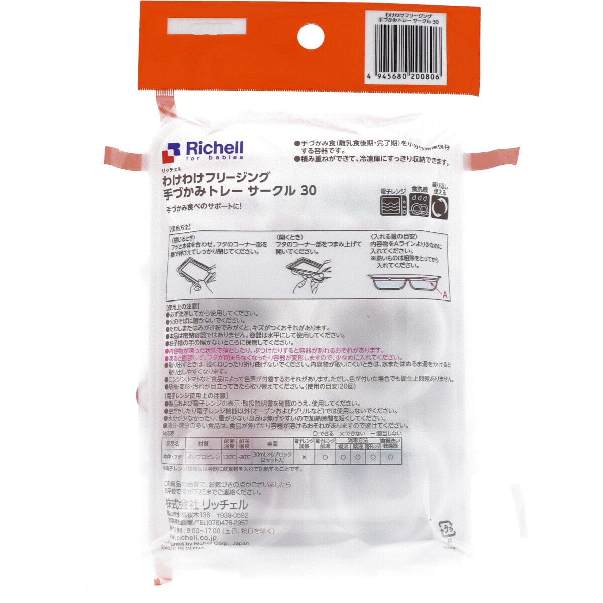 [规格] - 材质:聚丙烯- 耐热温度:120°C - 耐冷温度:-20°C微波解冻:是的- 消毒方法:煮沸、化学溶液、微波可用洗碗机清洗:是