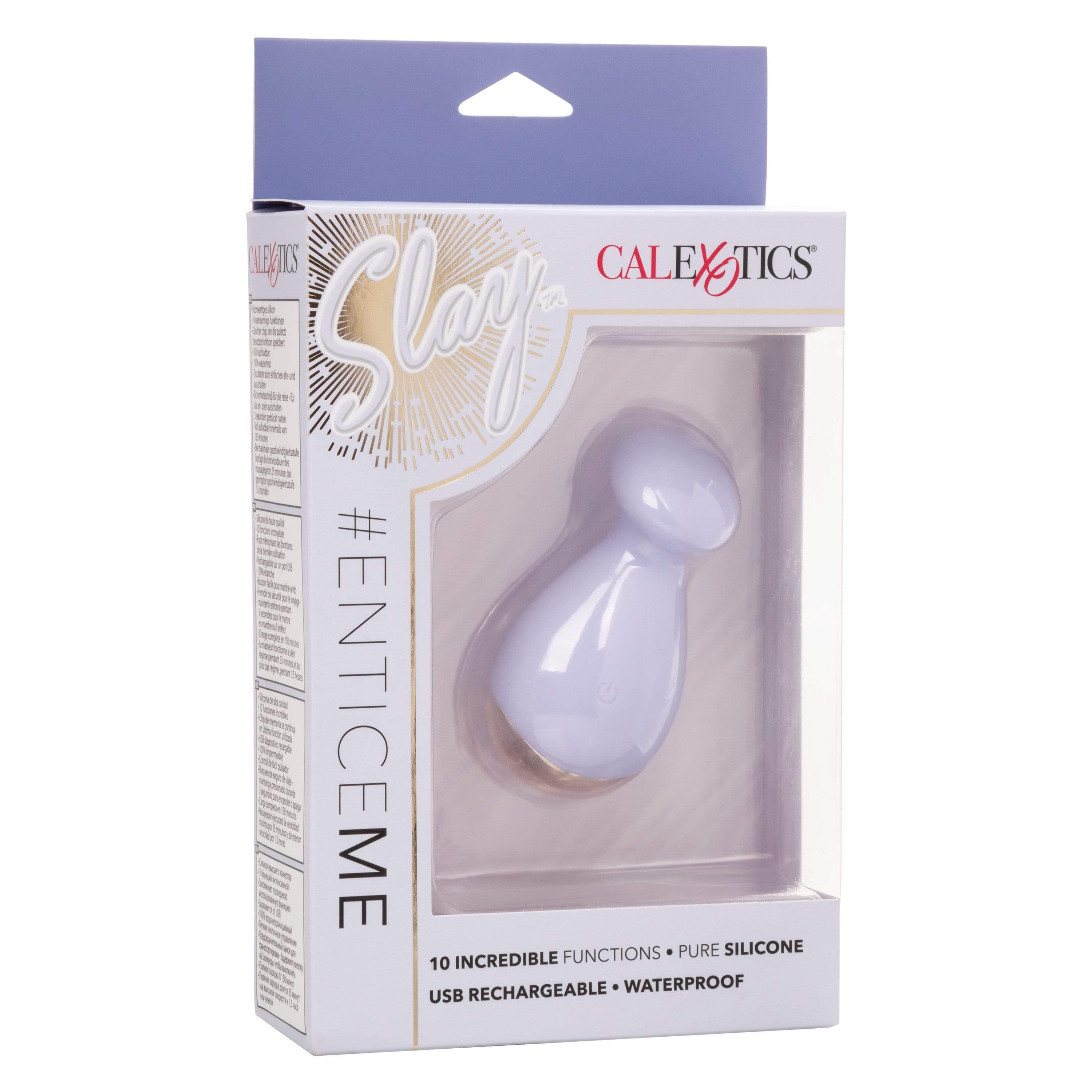 紫色 Slay EnticeMe 硅胶阴蒂按摩器专为旅途中的欢乐而设计!这款迷你棒按摩器通过灵活的振动带来愉悦感。使用易于触摸的控制按钮从 10 种令人愉悦的升级功能中进行选择。感性辅助工具的超丝滑触感硅胶和宽大灵活的头部非常适合探索感性的最佳点。享受长达 1.5 小时的振动乐趣!将提供的 USB 线插入按摩器背面的自密封充电端口,只需 2.5 小时即可充满激情。这款纤巧低调的 4 英寸按摩器是您的天然旅行伴侣。来自加州异域风情!