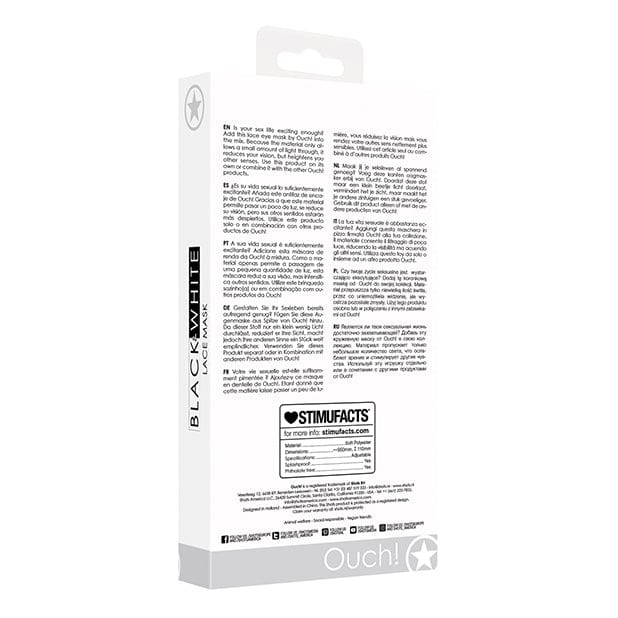 Enhance your sensory experience with the Shots Ouch Black and White Lace Eye Mask. Crafted from luxurious silk, this eye mask is designed to heighten your other senses by gently reducing your vision with its semi-opaque lace material. The sleek black and white lace design adds a touch of elegance and allure to your intimate moments.