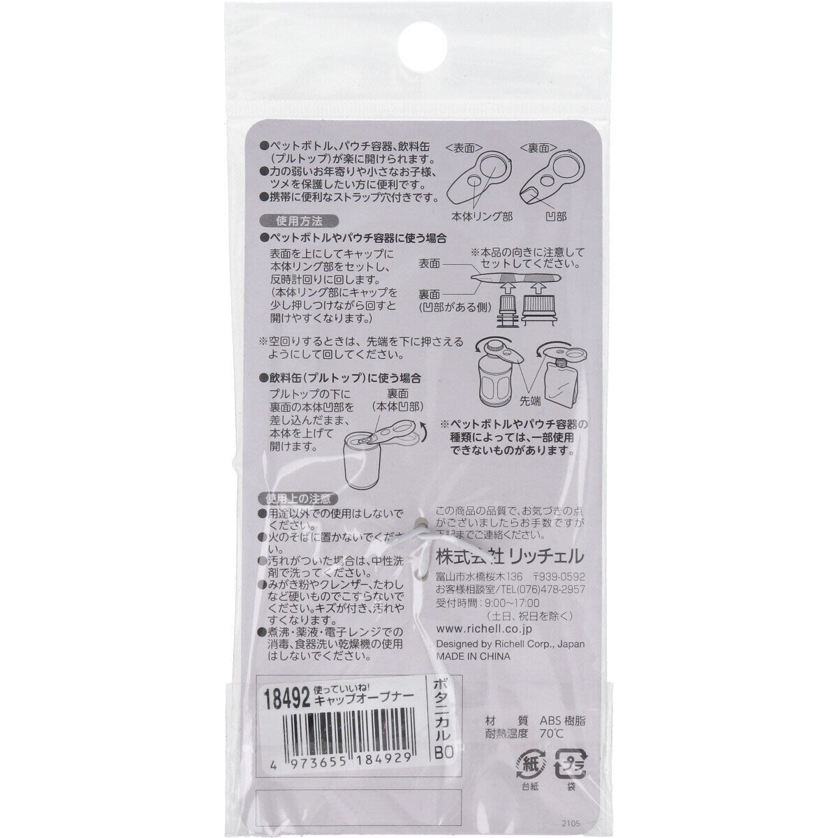 适合所有年龄段:非常适合老人、体弱的儿童或任何想要保护指甲的人。 Richell 开盖器让日常任务变得更加轻松和愉快。